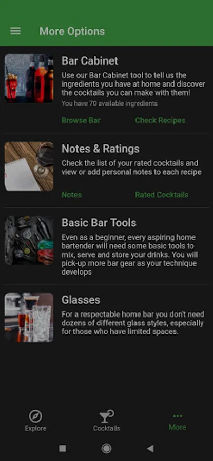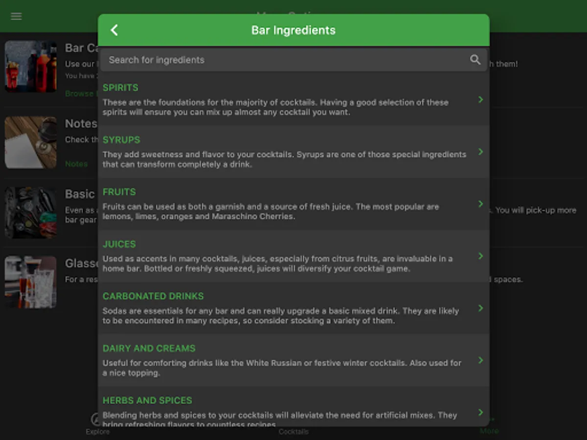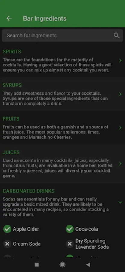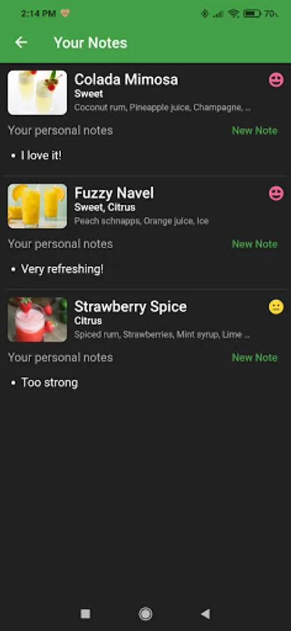 Quickly mark and access the cocktails you like/dislike to find them easily. Also, you can add a personal note to the cocktails you prepare to help you remember if they need modifications based on your taste.