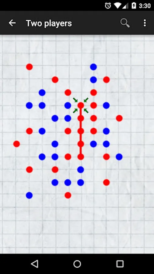 Android plays blue dots, you play red dots. Red and blue dots are put in turn on the lineintersections. The first move is yours.