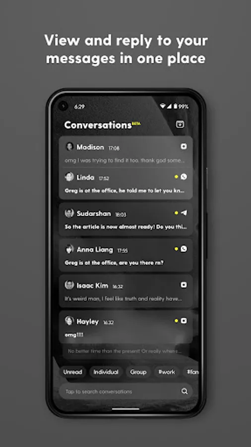 Stay on top of your social and professional lives without distraction. No more endless switching between apps find your messages. Prioritize your focus and productivity.