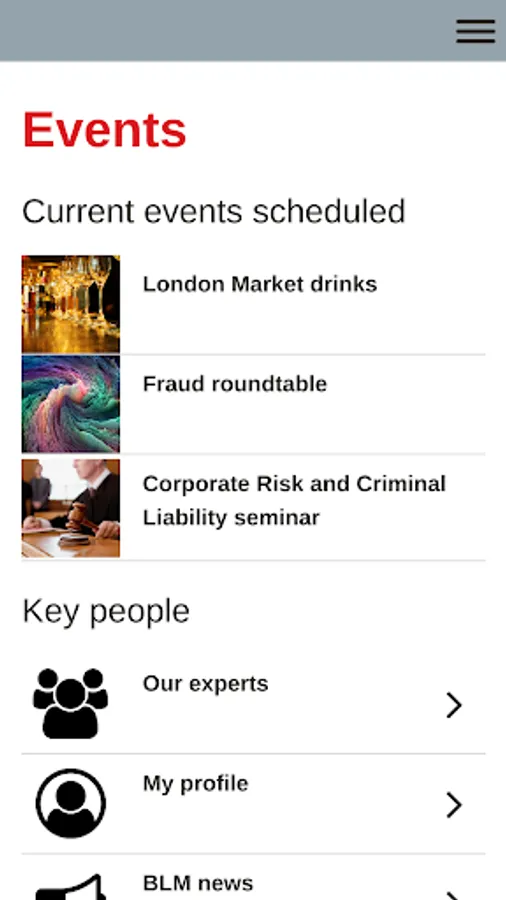 As a user of the app you will be able to see a list of current events, key experts across the firm and register your interest for future events.
