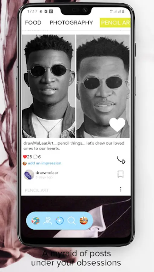 Imagine a universe full of posts of arts from various artists, made to suit your obsessions. A universe where you can splash (like), add an impression (comment), and share an artwork of various artists all around the world. A universe filled with great skills and talents and a universe where you can freely choose your obsessions and what you really love to enjoy.