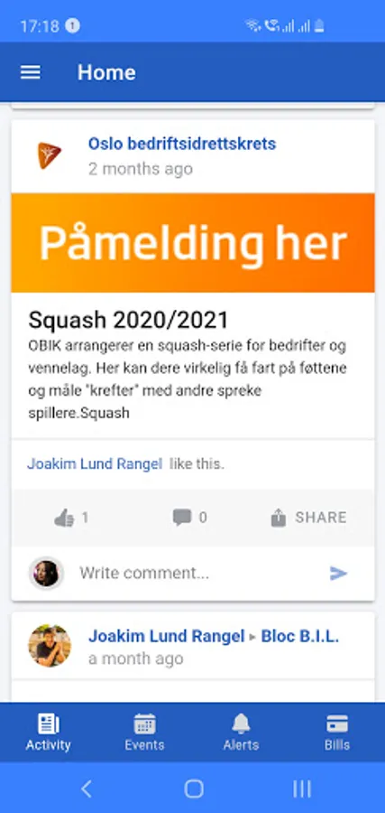 Members of sports teams get an overview of what is happening in their club and in their team. Members of Corporate Sports also get an overview of all activity in their corporate sports team and in their circle.