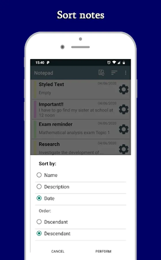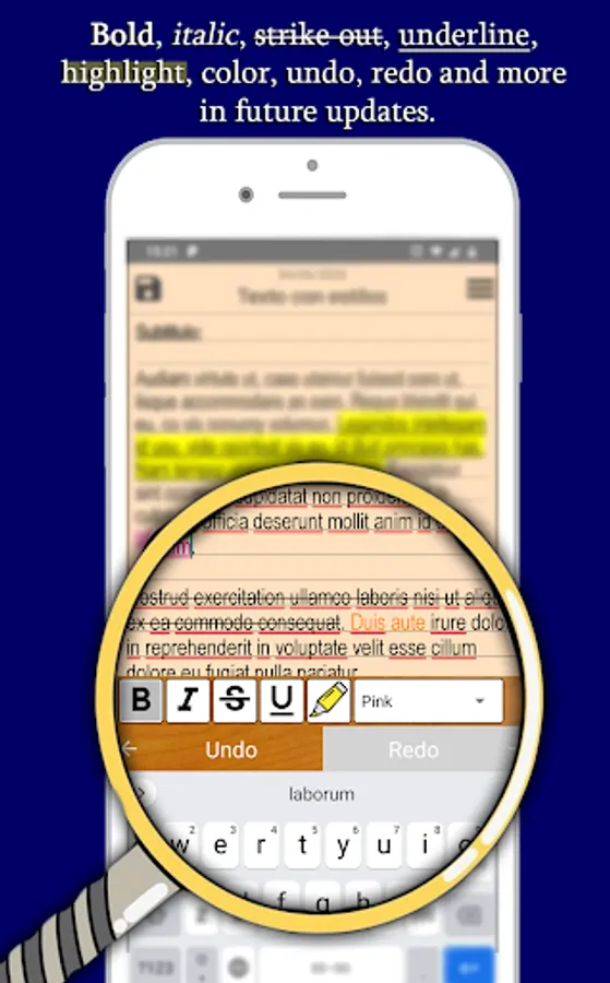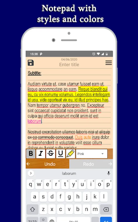 There are different fonts to customize your notes. You can also change the size and style (Normal, Italic, Bold, Italic bold).