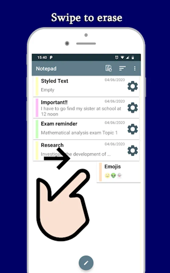 We offer you a quick notepad 📝 easy to use and with a variety of fonts, styles and colors for each note. We also offer you the opportunity to decide the background of your notebook between white and yellowish.