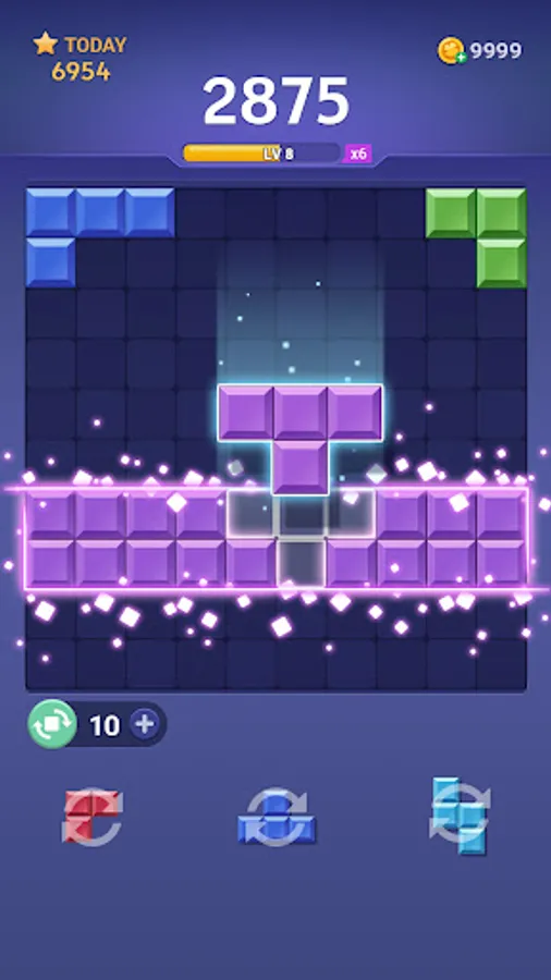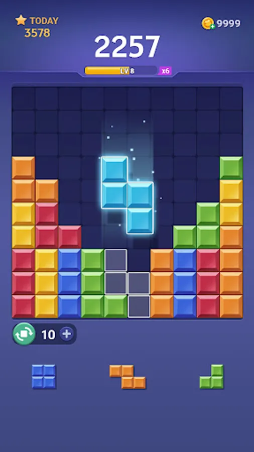 ⏰ Block Crush provides an extra space for you to store one block. You can temporarily store the blocks that can't be placed on the board and reuse it at any time afterwards.