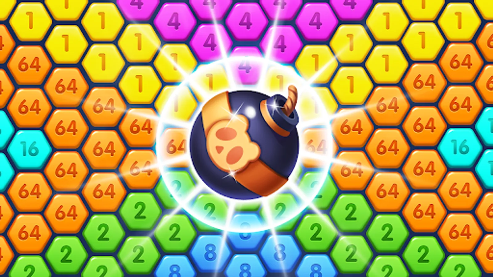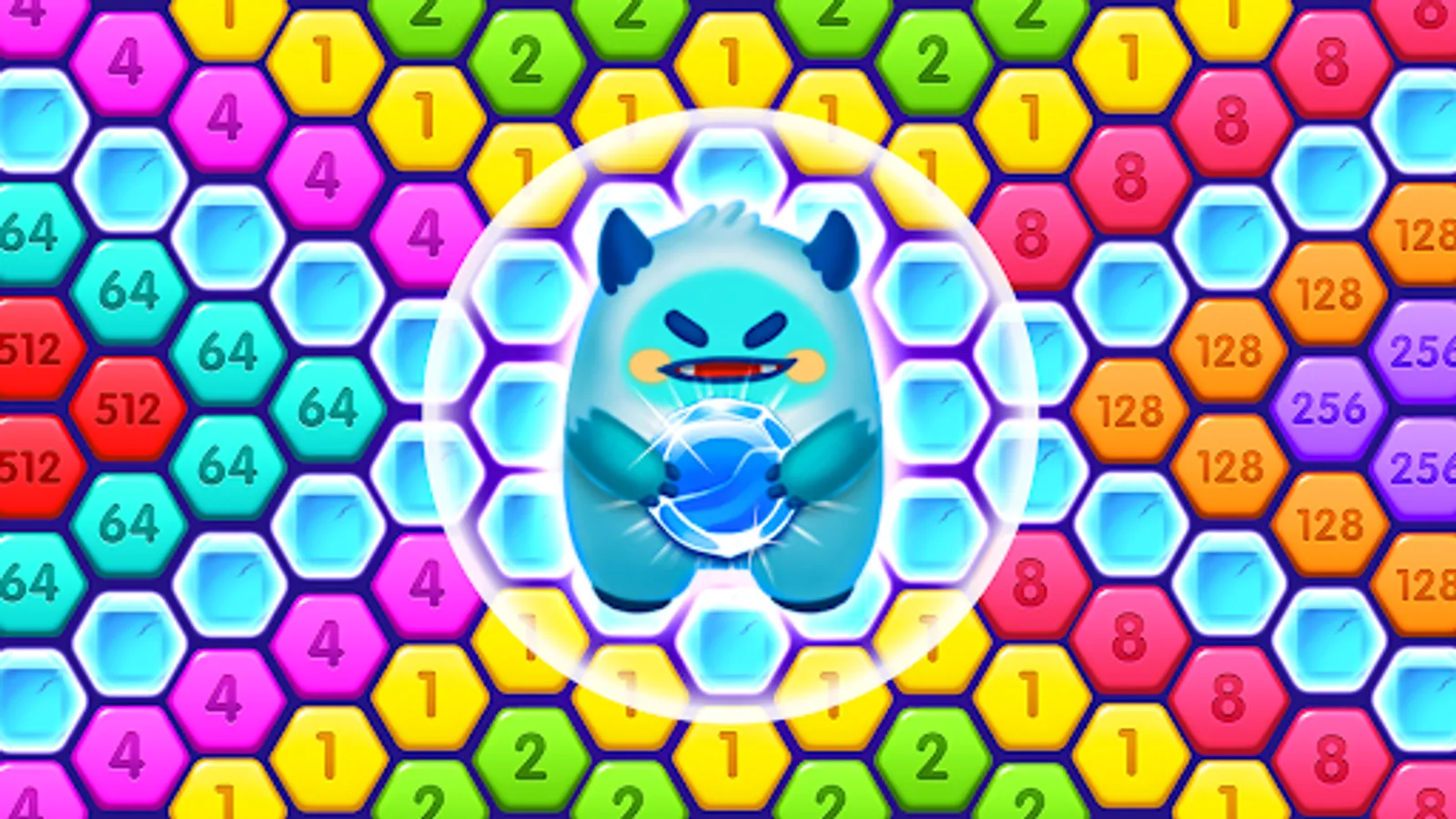 ★Putting block hexa of the same blocked number together will cause matchmaking and eliminate. 4 or more blocks with the same number will merge into a bigger number blocks.