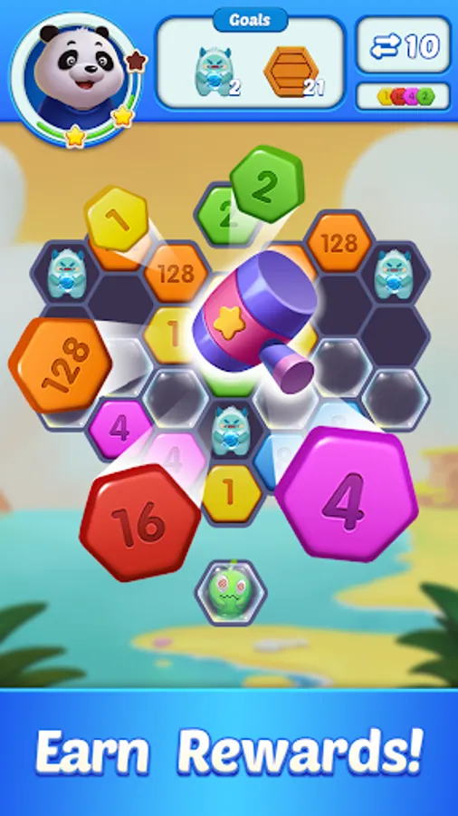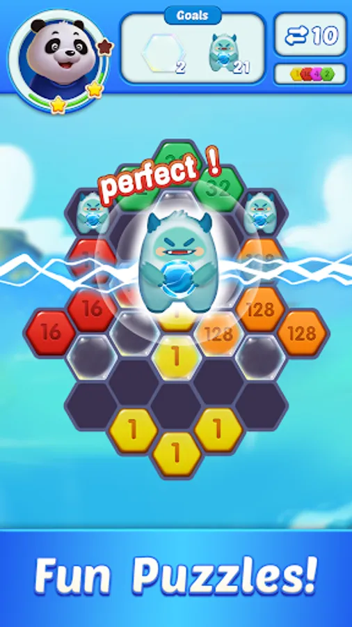 • Concise hexa puzzle UI.