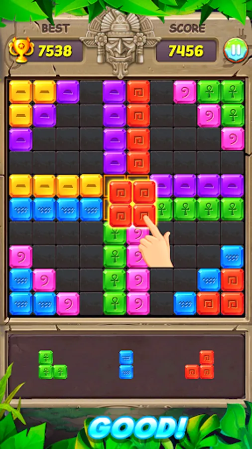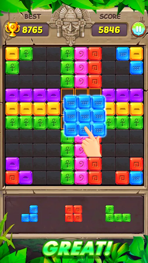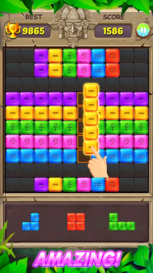 Place blocks to create and destroy entire rows vertically and horizontally on the screen. The more rows you delete at once, the more points you will earn. Get as many points as possible to become the best block crash. As a free simple strategy game, Ancient Jewels: Block Puzzle can improve your spatial skills while relieving stress!๐ฅ