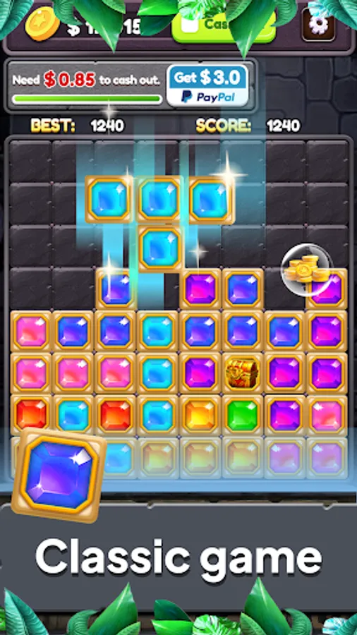 Gem Block Puzzle is a real classic, no time limit and totally elimination game. You can play as long as you want without being interrupted. There are many kinds of block shapes, T-shaped, L-shaped, J-shaped, square-shaped etc.