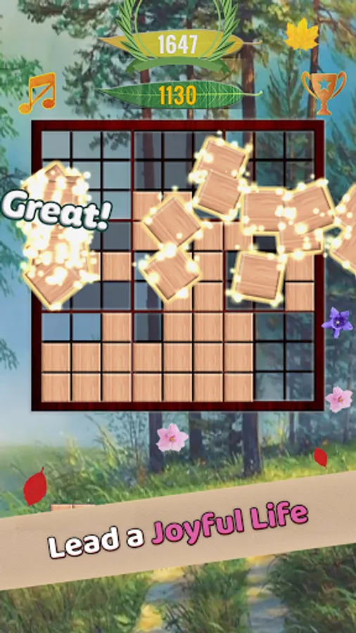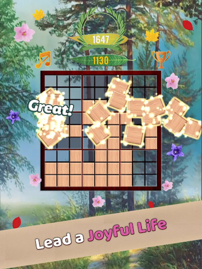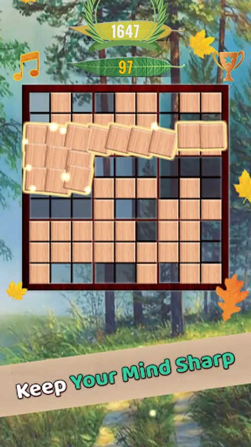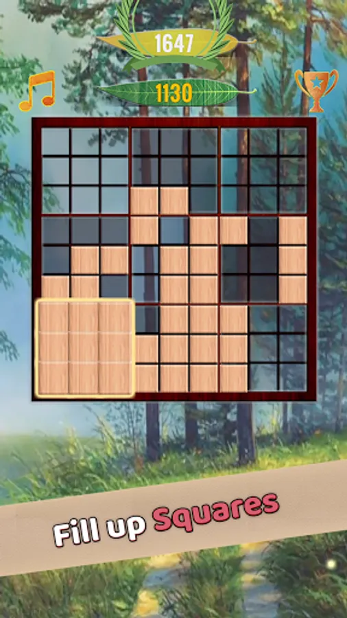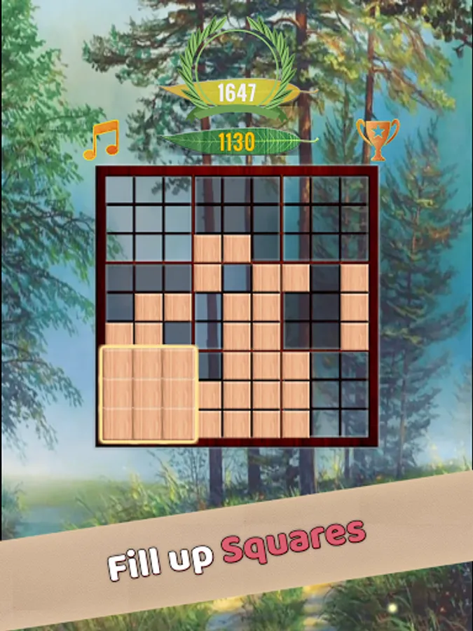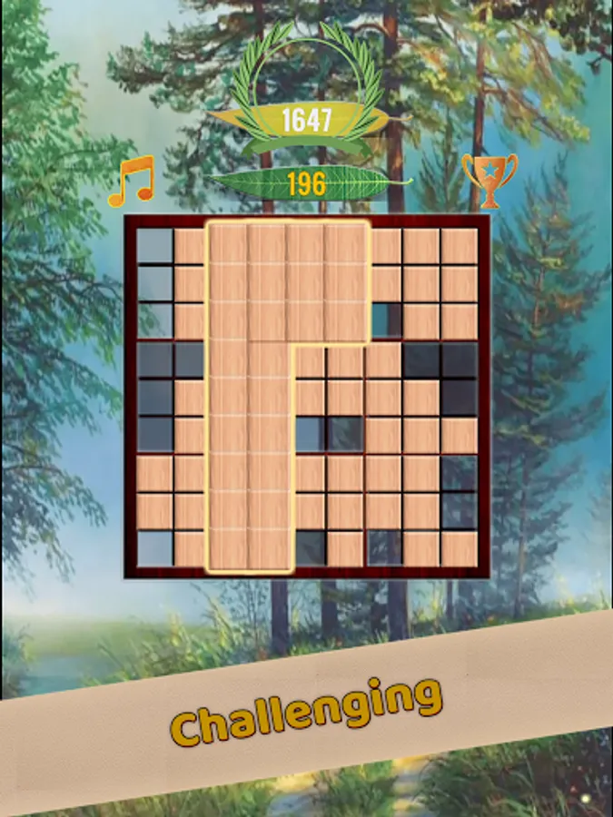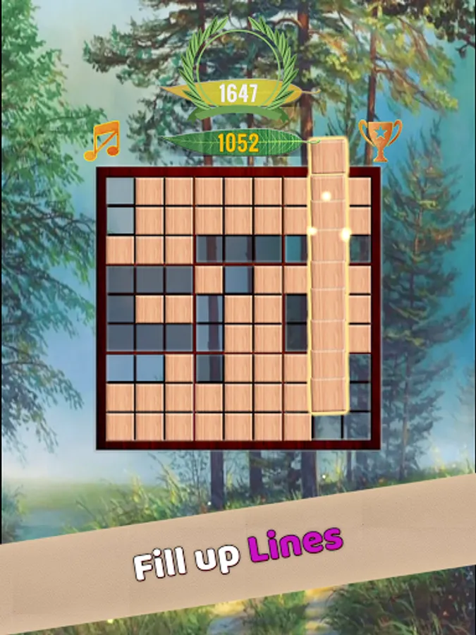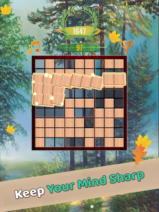 In Wooden 99 : Sudoku Block Puzzle, just simply drag and drop the blocks to create and destroy full lines on horizontal, vertical or designated 3x3 grids to clear them.