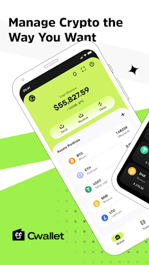 Whether you are looking for an Ethereum wallet, BTC wallet, or Defi wallet, Cwallet provides a secure system that makes it simple to manage multiple cryptocurrencies such as Bitcoin, ETH, USDT, Tron, Litecoin, and many other ERC20, BEP20, and ERC721 tokens on your device.