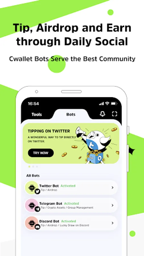 With its futuristic tech, you can trust Cwallet to offer you a free & all-inclusive set of crypto tools to empower a faster, easier, and safer crypto journey. It is not just a wallet to invest, buy or trade your crypto assets but a comprehensive crypto tool kit with multiple crypto bot-enabled features like crypto tipping and community management. With easy social platforms integration, you can boost and support the future of the crypto economy and strengthen your crypto coinbase on the Blockchain.