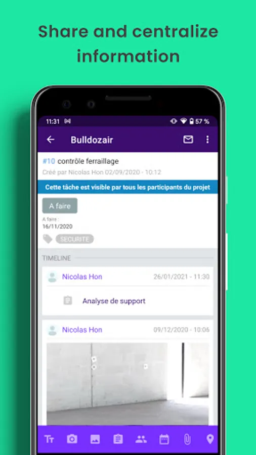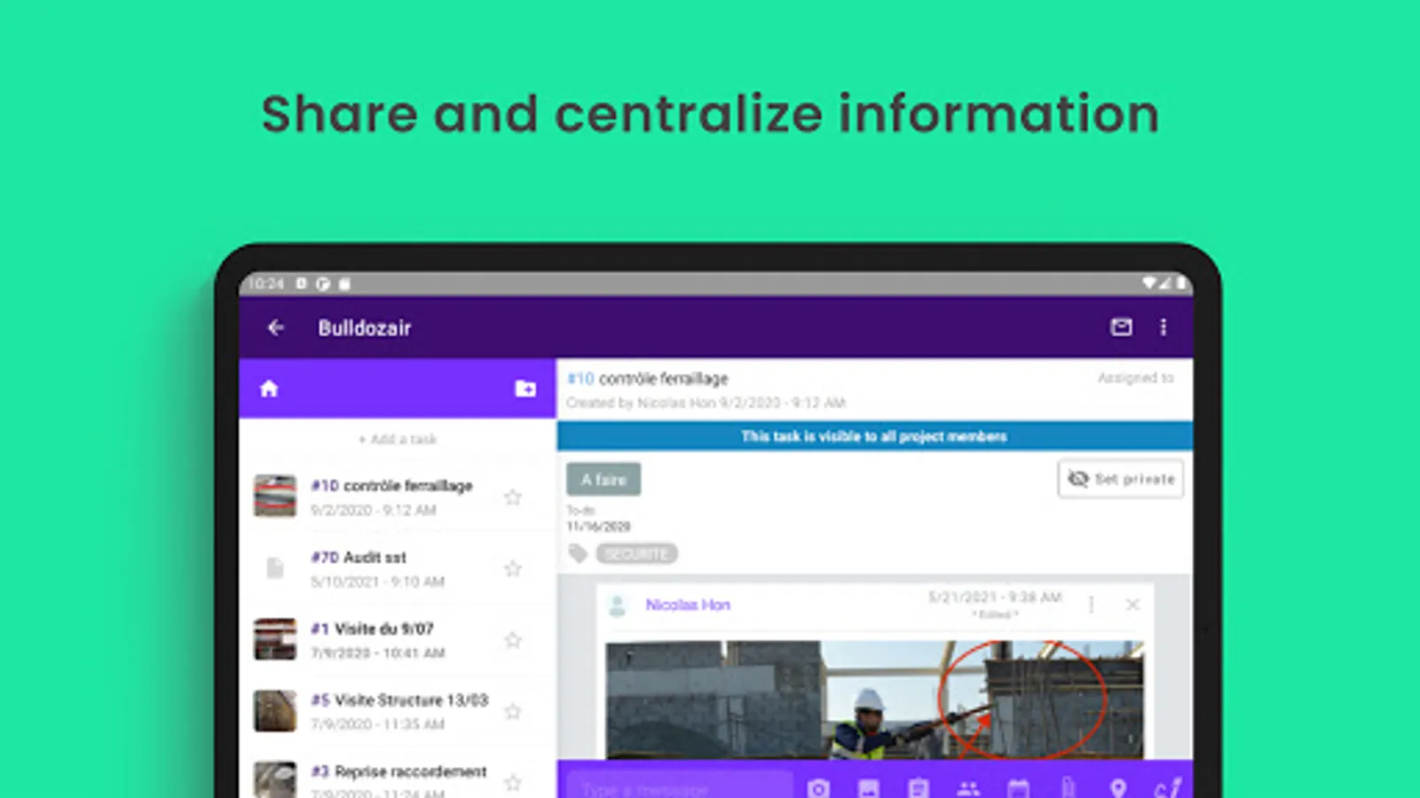 No more return trips by e-mail, SMS or telephone. Work on a tool centralizing the decisions taken on site and shares documentation with access rights.