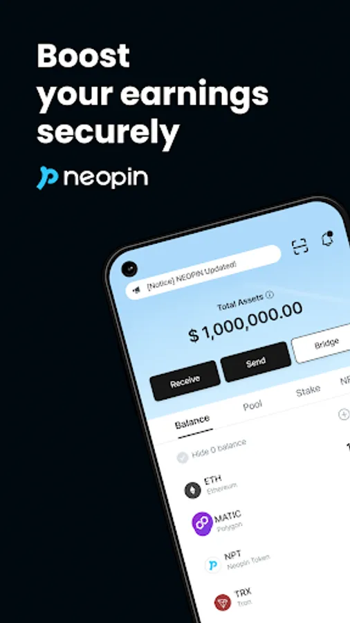 - NEOPIN wallet offers DeFi products from various networks such as Ethereum, Polygon, Klaytn, Tron, and continues to add support for more networks.