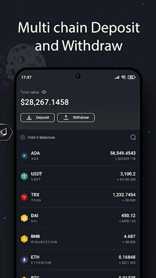 Hundreds of cryptocurrencies such as Bitcoin, Ethereum, Tron, Cardano, SHIB, Doge, XRP, LINK, UNI, XTZ, LTC, and more, are presented in different related Networks to Send, Receive, Buy and Sell in a centralized exchange. You can hold cryptocurrencies in our safe platform to benefit our Future business models as long as you want.