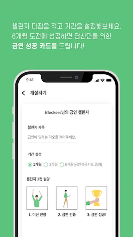 Challenge-Challenge the 1, 3, 6 month challenge while performing non-smoking missions. If you successfully quit smoking for 6 months, you can permanently obtain your own quit smoking success card.
