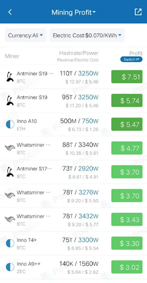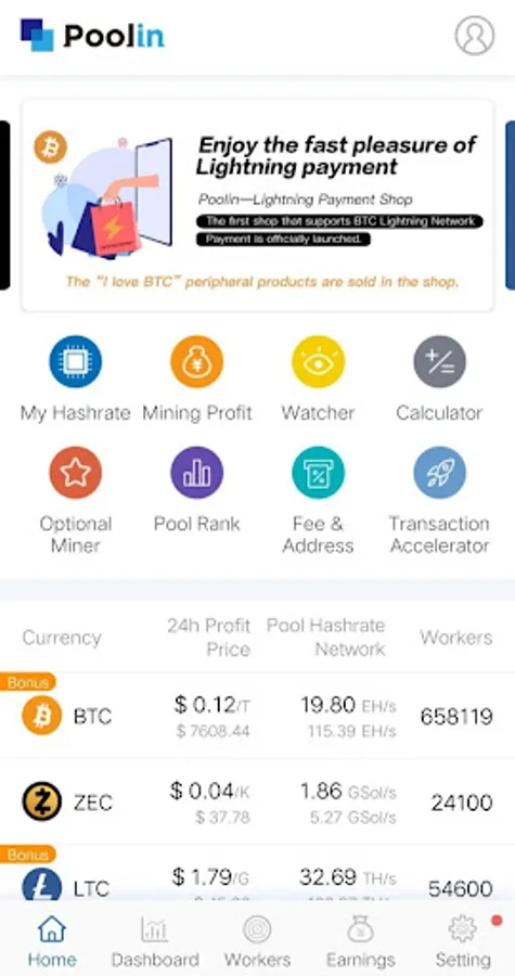 Poolin.com pool has been supporting multi-currencies, like BTC, BCH,BSV, LTC, DASH, ETH, ZEC, RVN, DCR. In Poolin, you will enjoy better earnings, excellent service, secure and stable pool system and comprehensive tools. A user-friendly app, hashrate alarm, calculator, and watcher functions are all available for you.