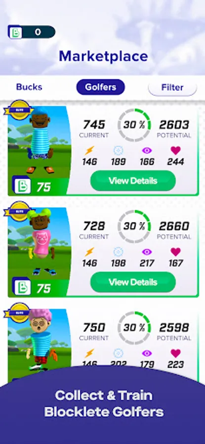 Blocklete Golf will test your digital golf and strategy skills! Compete in tournaments against other players, win and upgrade your golfers through your game play in fun and unique environments! Climb the leaderboards against players worldwide, get extra rewards, and one of a kind trophies for top place finishes. Treat your time and your golfers as real assets. Invest in your players and grow their stats to help you win amazing prizes and dominate our leaderboards!