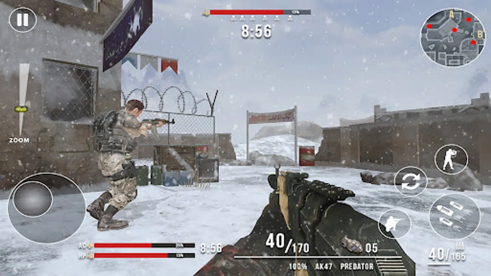 These sniper and elite shooting games free come with straightforward controls that count in the shooting games free. On the game's play screen, there is a target locator. Control movement of the player in this shooting and gun games offline with a joystick in sniper strike. Your health bar and remaining bullets are highlighted on the screen along with the number of enemy soldiers still on the battleground. Become the shooter with the auto shooter or you can be commando without it. All these controls make these gun games offline very entertaining.