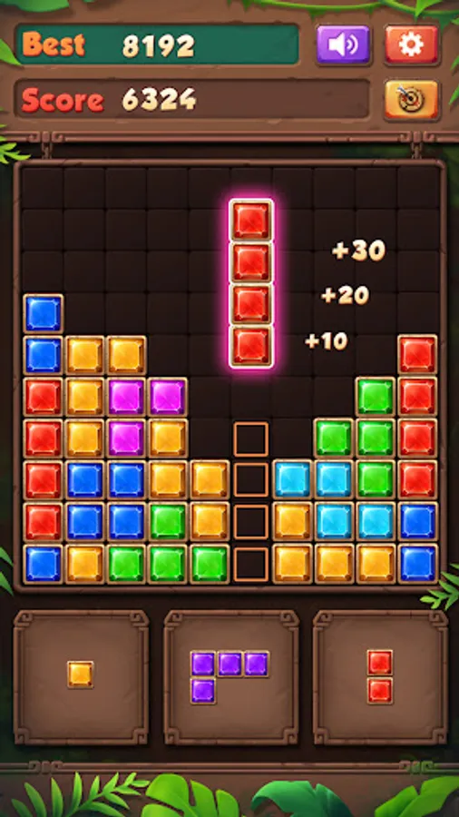 💎Block Puzzle - Jewel Crush💎 features the jungle theme and a 10*10 game board, in which you can