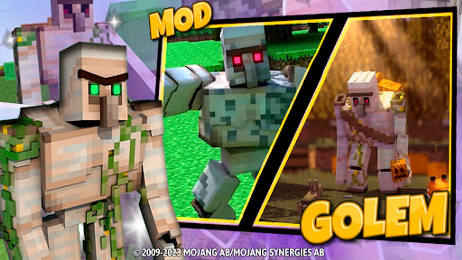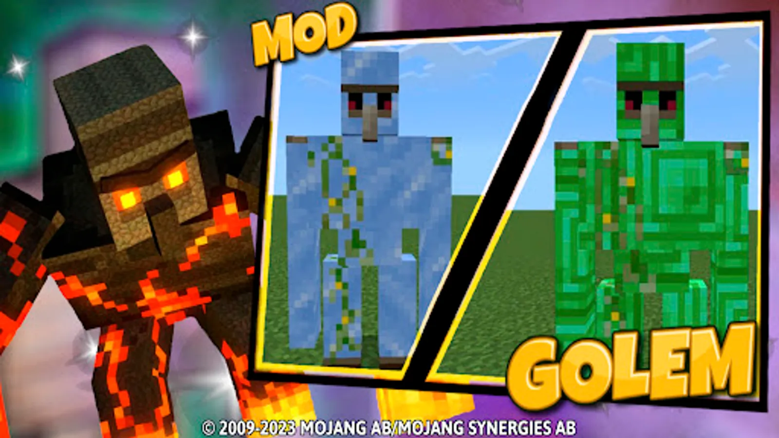Golems Mod: Expansion Dungeons includes mods, maps, textures and skins with wallpapers for blocks craft pe game. The additional mods are Buffed Golems Mod and Expansion Mod. This app supports multi language translations and installs mods, maps and textures in one click.