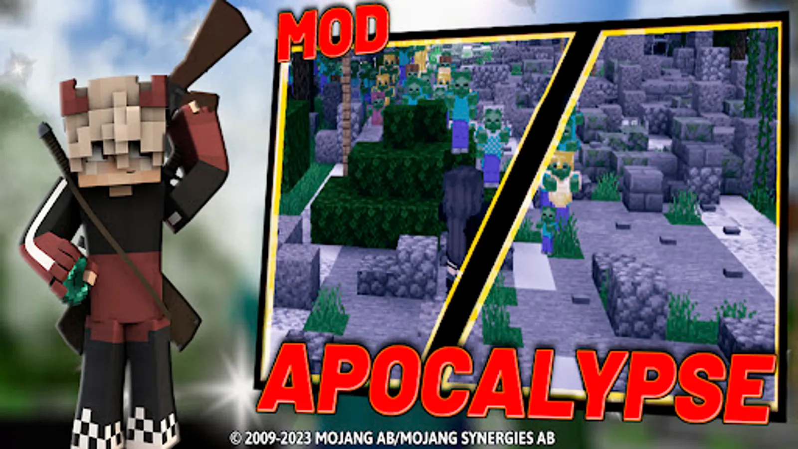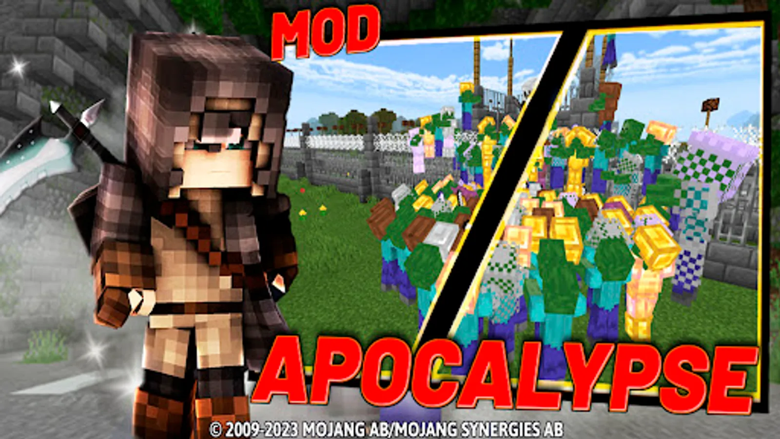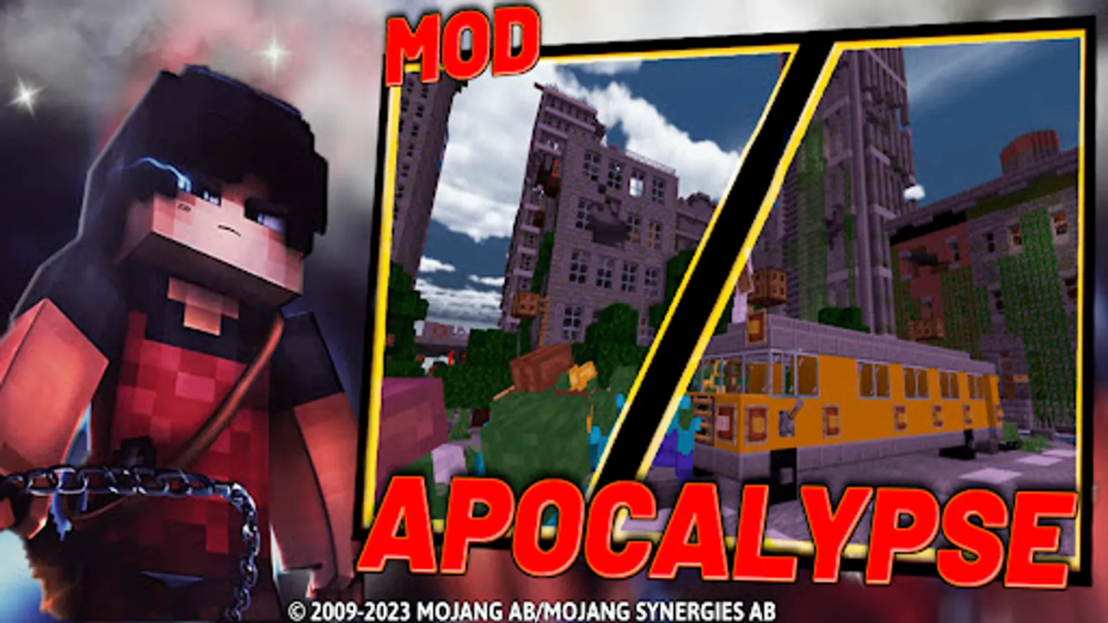 Apocalypse Mod: More Zombies includes mods, maps, textures and skins with wallpapers for blocks craft pe game. The additional mods are Improved Zombies Mod and Crafting Dead Apocalypse World Mod. This app supports multi language translations and installs mods, maps and textures in one click.