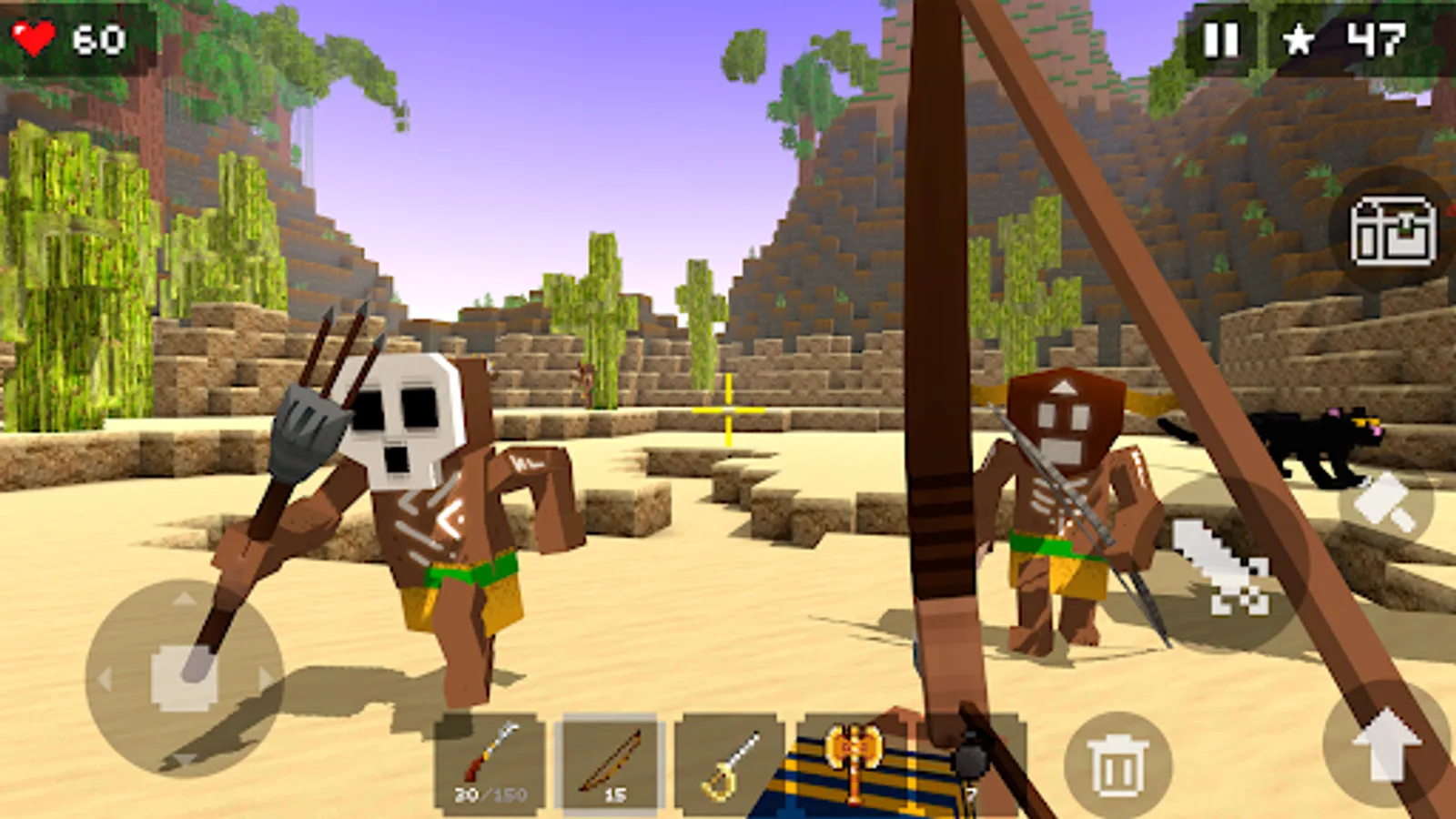 - variety of weapons types for mine blocks and survive! Use a bow, gun or pistol. Destroy block world with bombs or get an axe!