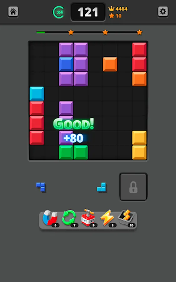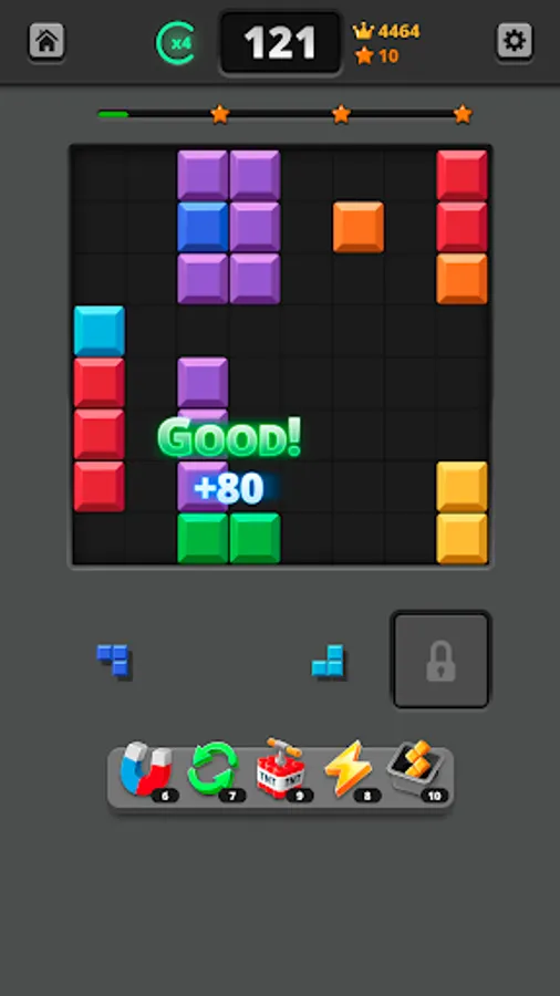 ❗The blocks don’t drop: 🎲 Unlike in traditional building block games, in Blocky Quest you don’t have to fit the blocks on the board as they fall. In fact, you’ve got all the time in the world to try to find the best position. This makes the game more like a jigsaw puzzle, but it doesn’t make it any less fun or infuriating.