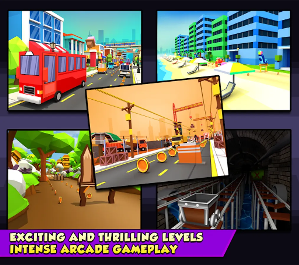 As you play this kiddy escape game you can acquire coins and purchase various upgrades or collectibles. These include the pogo stick, cycle, magnet, shield and so on. In regards to power-ups, you will have the glider, invisible suit, magnet as well as med-kits and many others. With Kiddy Run 3D Race you always get the subway race 3D experience which you always want. It’s a fun game with subway train surf, highway surf and much more.