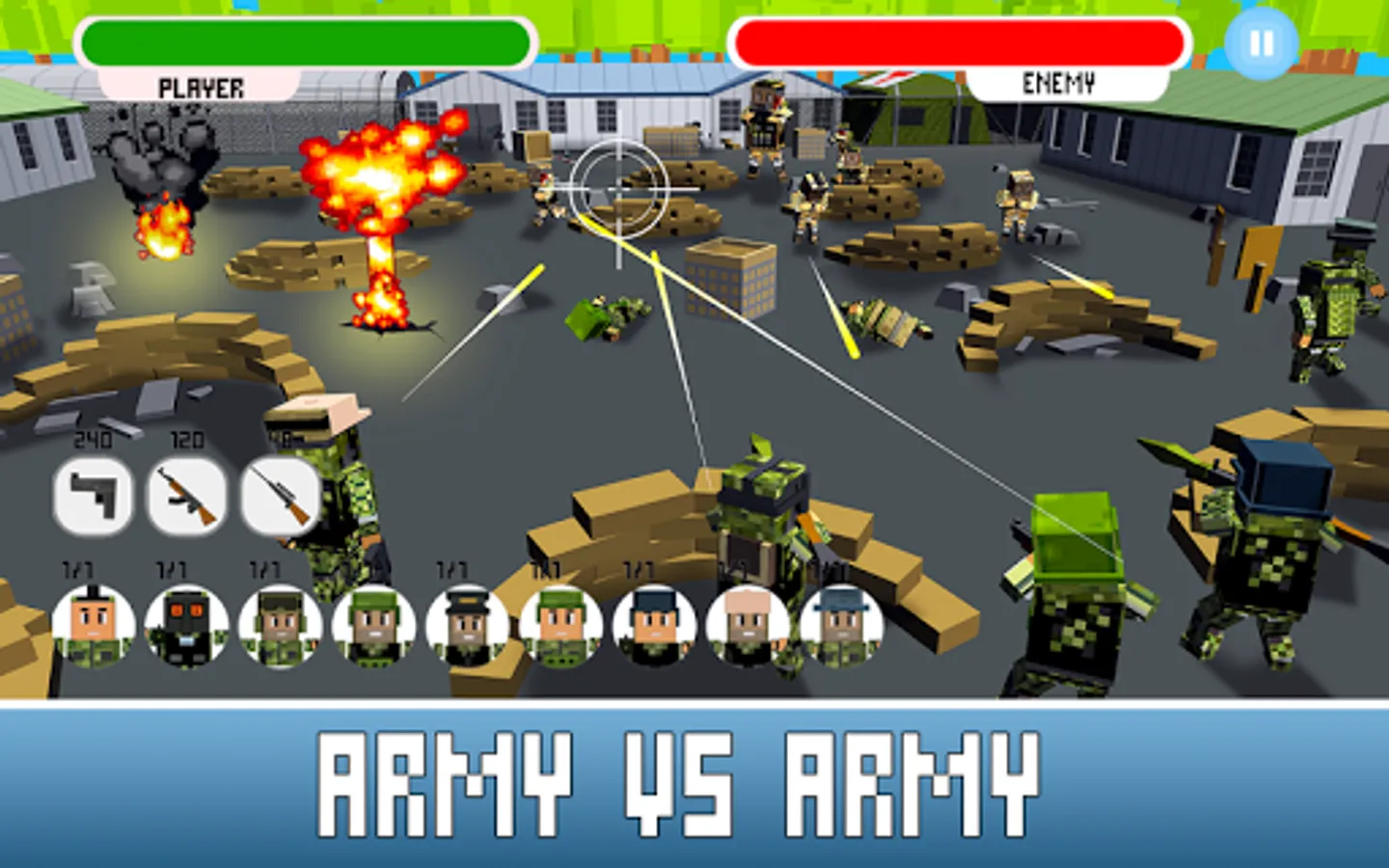 Fight and unleash your warriors in epic battle against evil army! Epic shooter on battlefield of war begins in Blocky Shooter: Frontline Wars!