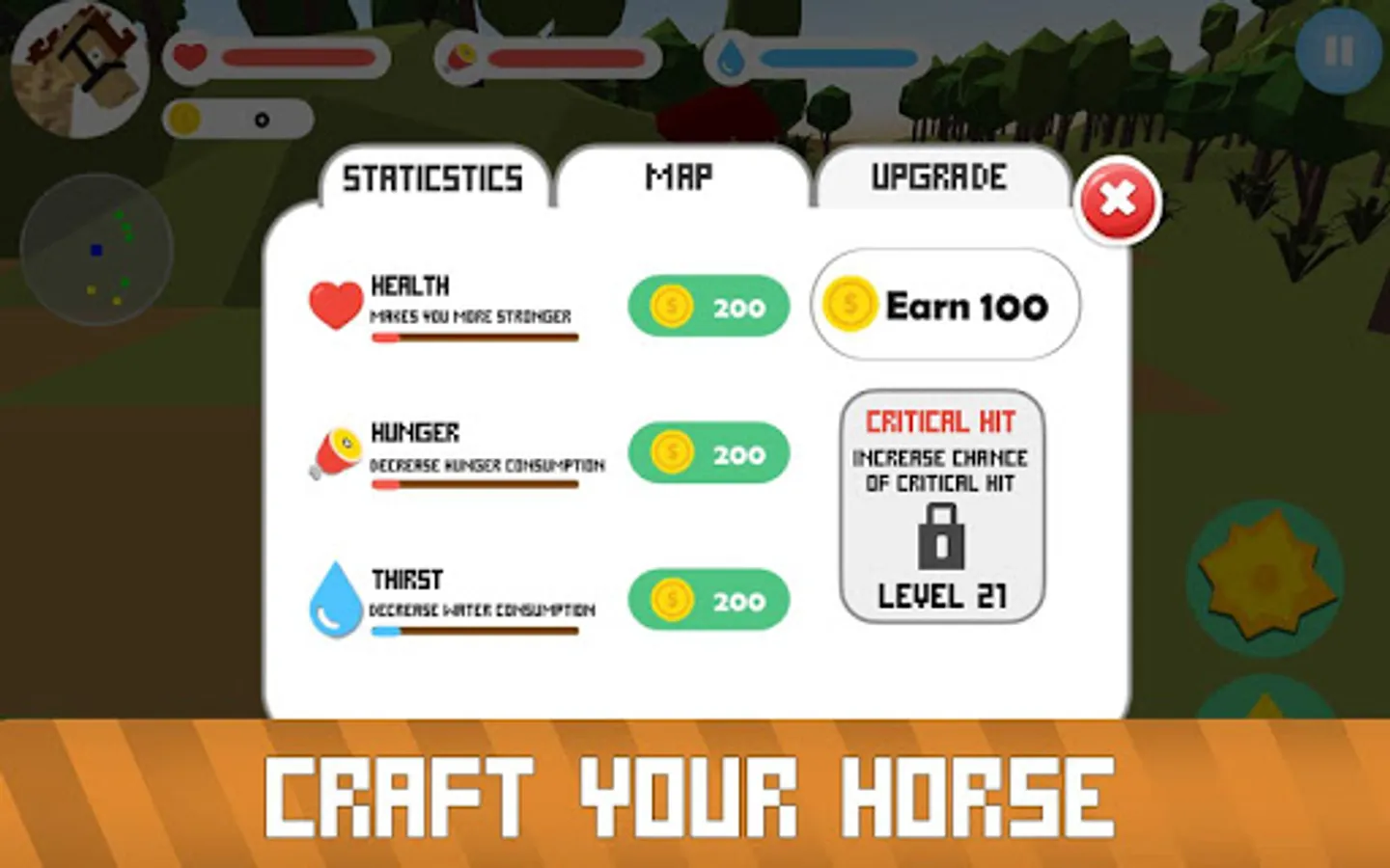 Master the craft of blocky animal survival in our simulator. Dress up! Different horse suits give different horse powers - animal survival is wild on the blocky farm of the simulator. Remember to maintain your horse energy, explore the farm, fight farm and wild animals, levelup your animal for survival. The simulator is wild and crazy, but challenging.