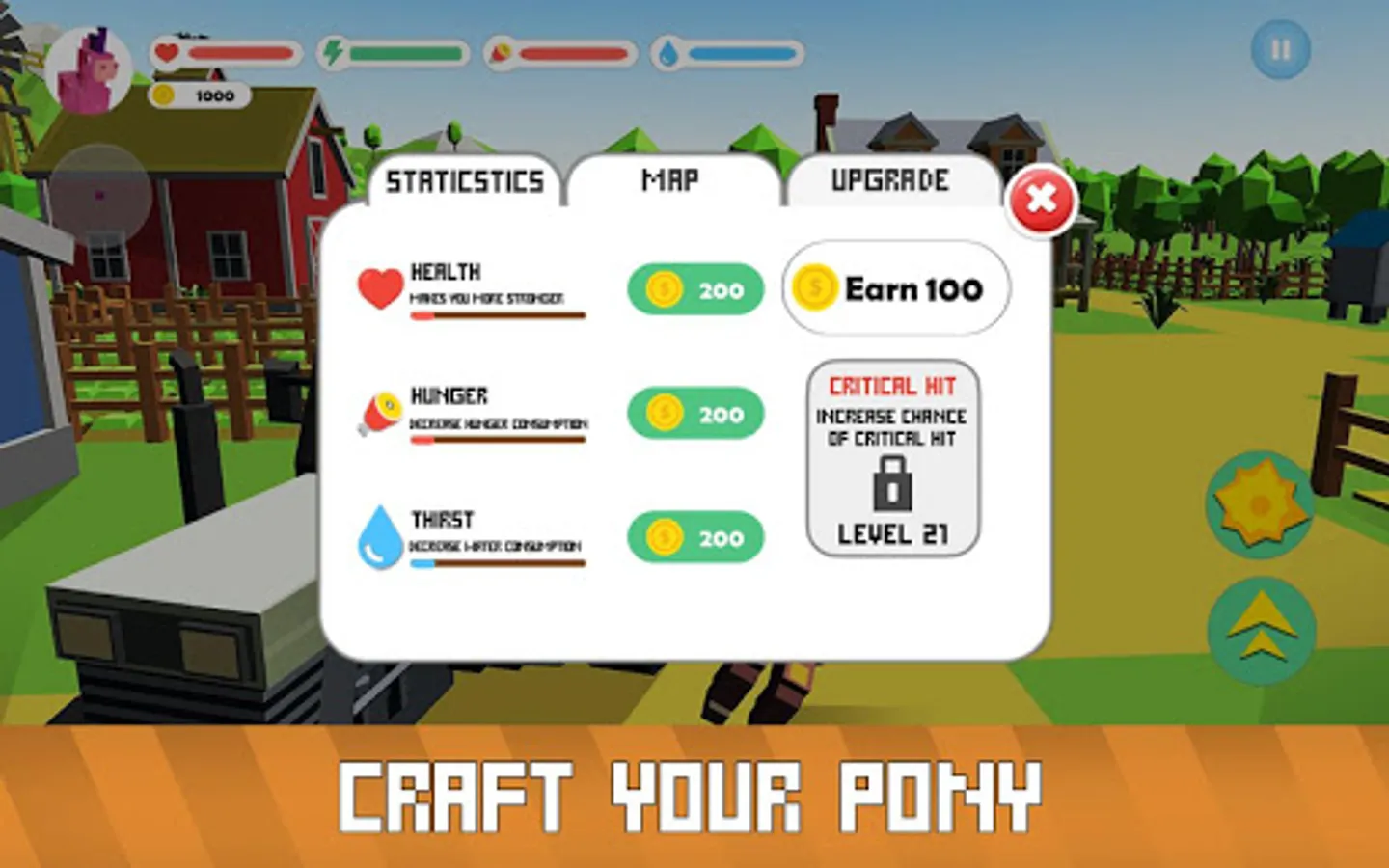Master the craft of blocky animal survival in our simulator. Maintain your pony energy, explore the farm, fight farm and wild animals, levelup your animal for survival. Complete all quests! Survival in the blocky simulator can be challenging - your pony can die on the blocky farm of the animal survival simulator.