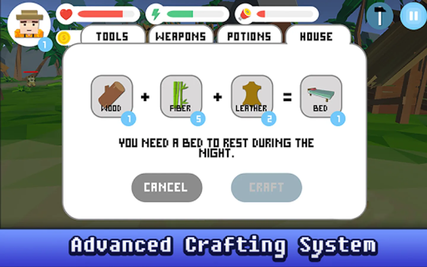 Craft Island Survival is for real men. Use all your skills for hunt, craft and not to get lost. Maintain your energy to escape from the Island. Watch your health - animals can hurt you.