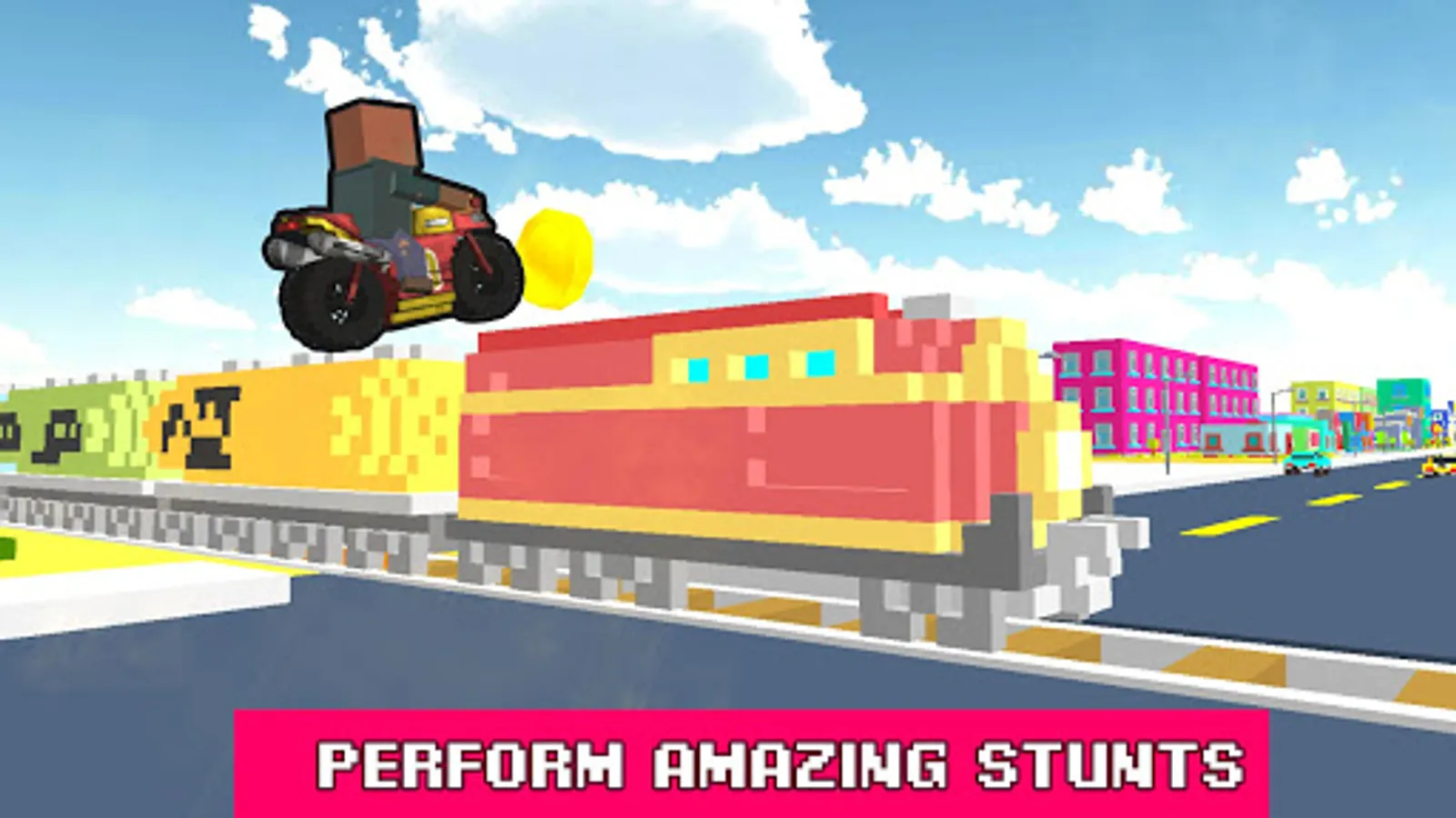 Let’s start new movement that strays away from traditional bike racing concept. Ride your blocky bike faster on highway and get best score. Make sure you jump when you find blocky train on your way or else your moto rider will be blast.
