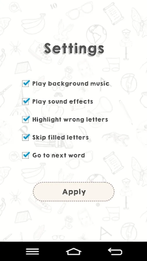 • Help options: allows you to highlight wrong letters, filter the keyboard, or reveal words;