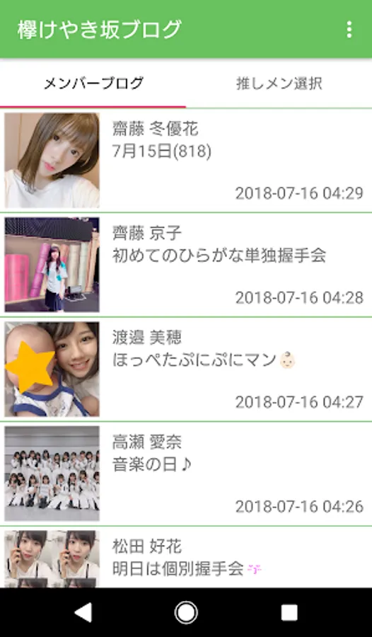 The list of blogs is displayed by selecting the recommended men, so you can check the blogs at a glance. A heart symbol will be displayed in the upper right corner of the photo for the selected recommendation.