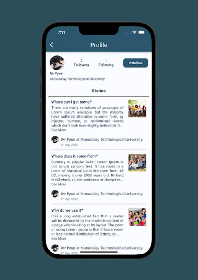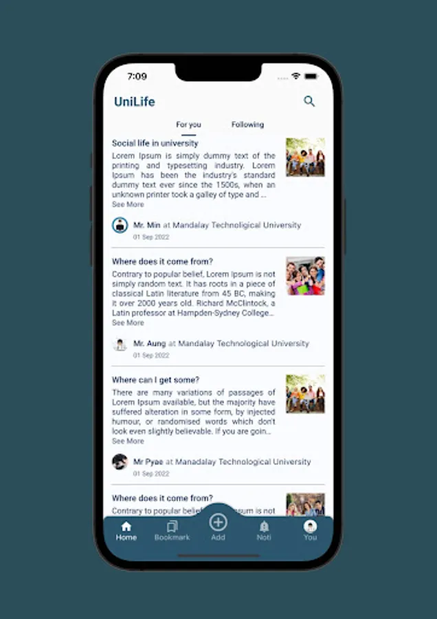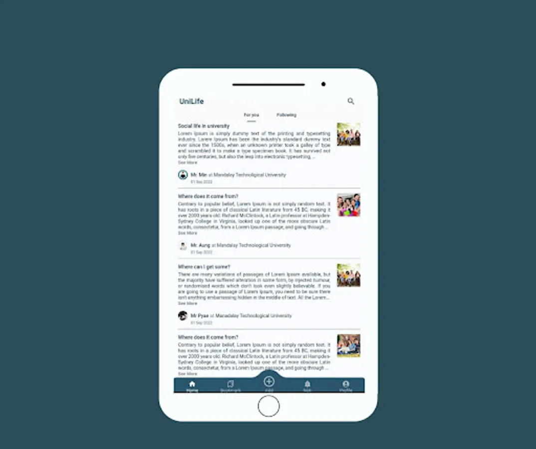 UniLife: A blog app where you can share your experiences throughout your university life.