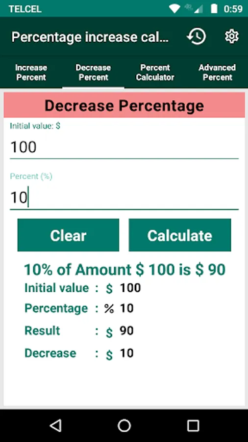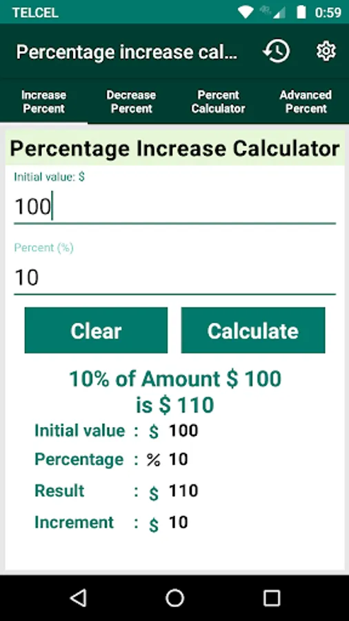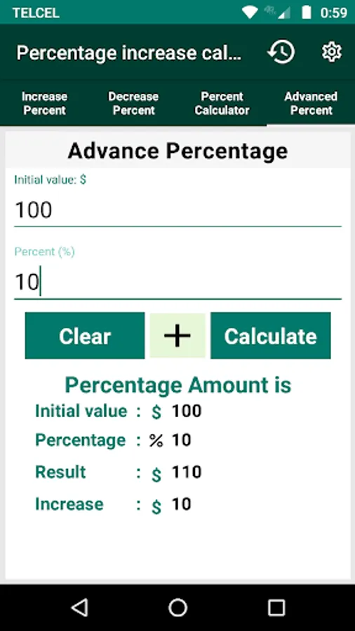 - There are 4 features of calculation, such as simple Percentage Increase calculator percentage, Decrease calculator percentage, Basic calculator percentage and Advanced calculator percentage