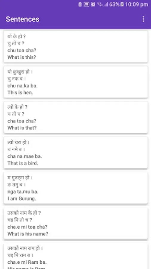 Using this app interested one can learn Gurung Language if he/she has already knowledge about either English or Nepali Language. This app covers only the way speaking or pronouncing part in Gurung Language but not any written skill in Gurung Language.