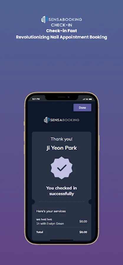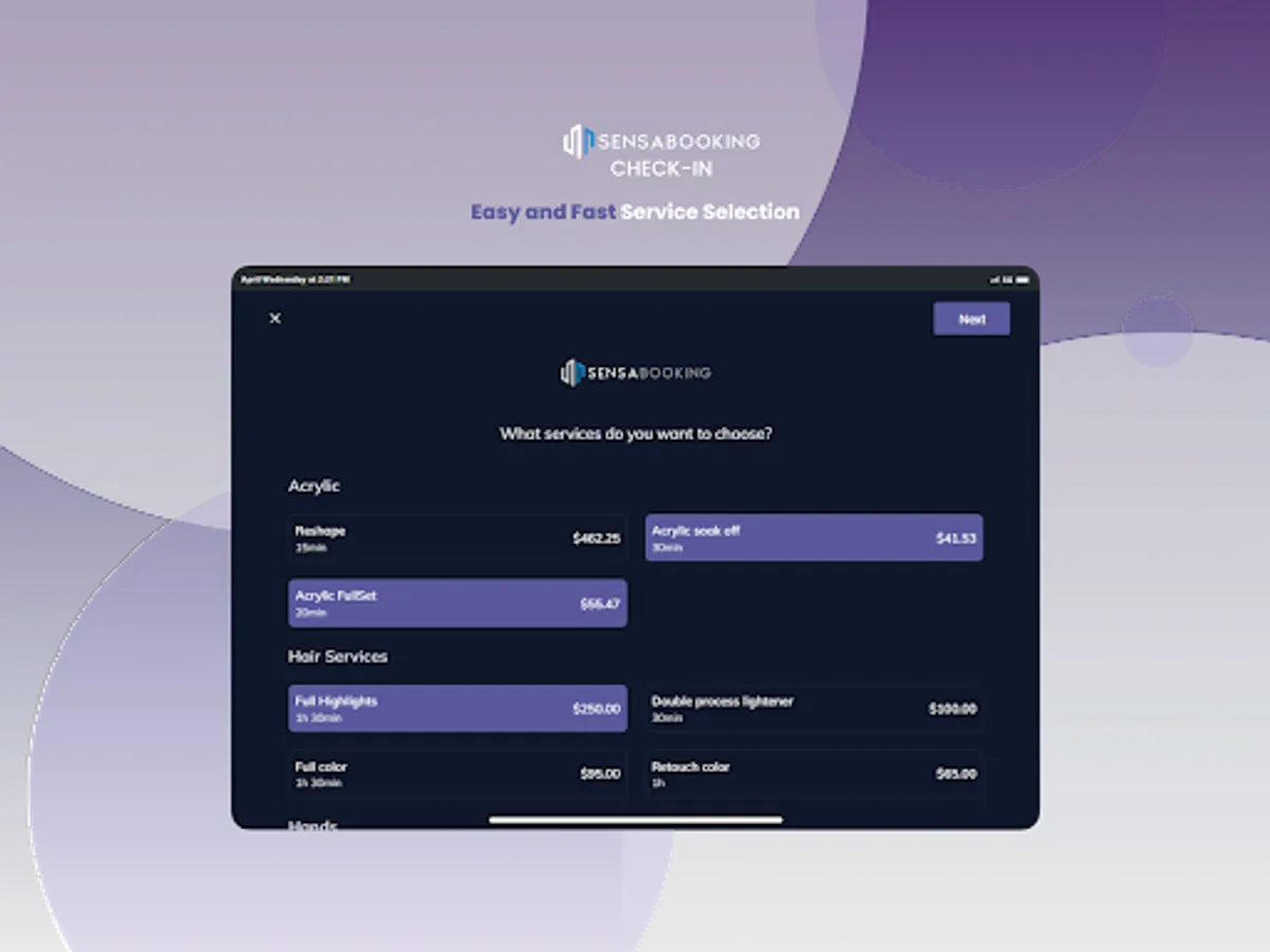 The booking check-in app for a beauty salon allows users to reserve a beauty treatment appointment and check-in for their appointment using their mobile device. Users can select the type of beauty treatment they want, choose the service provider, select the date and time of the appointment, and complete the booking process through the app.