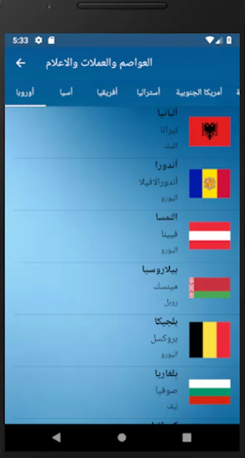 This application contains the countries of the world with their capitals, currencies and flags. The pages have been classified in a way that allows the user to easily masturbate where all countries can browse with the search for any country, capital or currency. Countries can also be navigated by continents. Arab countries have been classified separately with their capitals. There is the most important section that allows the user to answer the questions concerning countries with their flags and flags and currencies.
