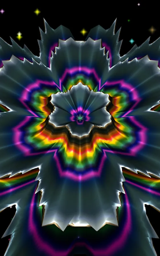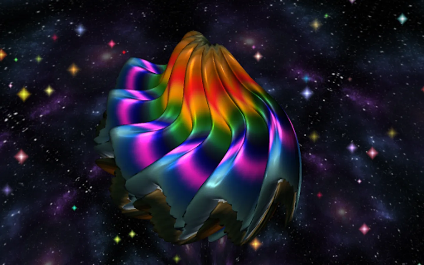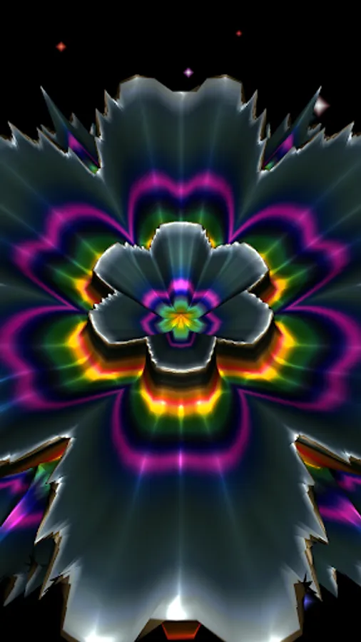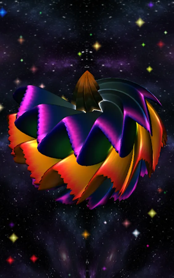 3D Live wallpaper with colorful dancing geometric shapes. The effect of the wave when you touch the screen. Harmony of movement and color. Control the camera with the help of sensors, the effect of parallax.