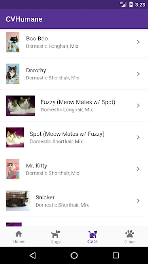 The Cedar Valley Humane Society (CVHumane) app allows you to search for adoptable pets the minute they are available for adoption from your Android device.