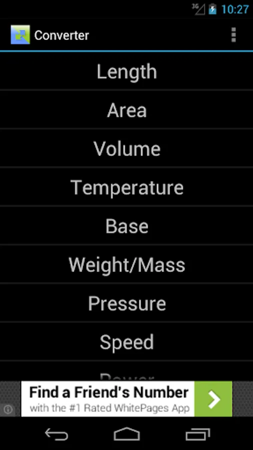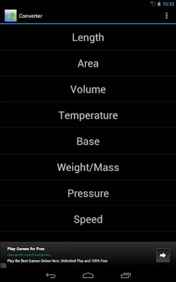 Converter is a simple unit converter. It's intuitive and easy to use. Features fast, real time unit conversion in a clean interface. Converter includes only the units you'll ever use, instead of cluttering the app with every single unit that exists.