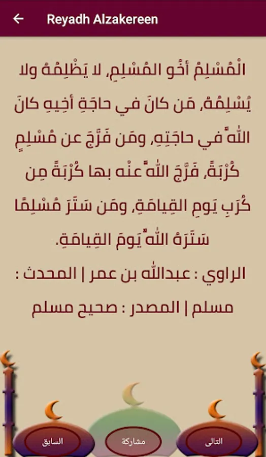 The application contains the morning and evening remembrances, in order to verify accuracy in the authenticity of the hadiths received.