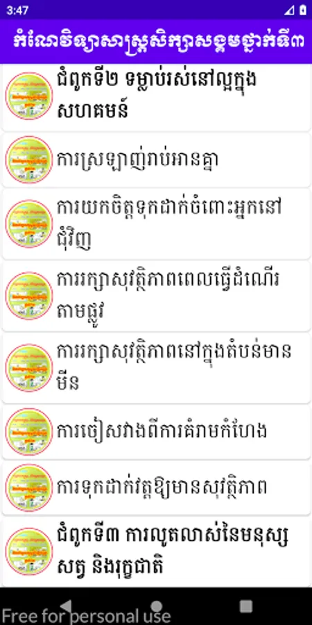 The third grade social science textbook has been developed in accordance with the curriculum of the Ministry of Education, Youth and Sports of Cambodia, with questions, exercises and answers to find out more.