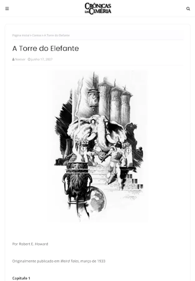 With original translations and stories, Chronicles of Cimmeria is the oldest source of Portuguese-language content on the Internet about Conan the Barbarian, the Hyborian Age, and other creations by Robert E. Howard.