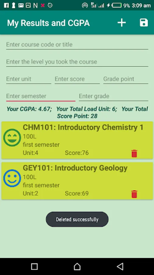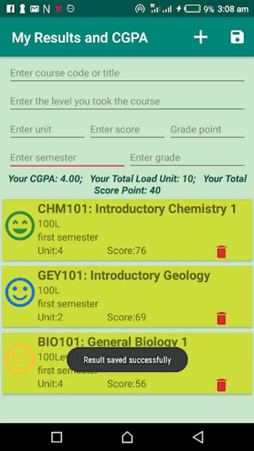 The application also save your result. You can also delete mistakes and update your result at any time even without internet connection.