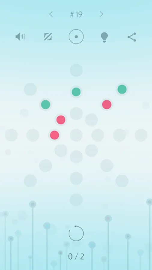 - Three or more same-colored dots arranged sequentially on any line disappear.