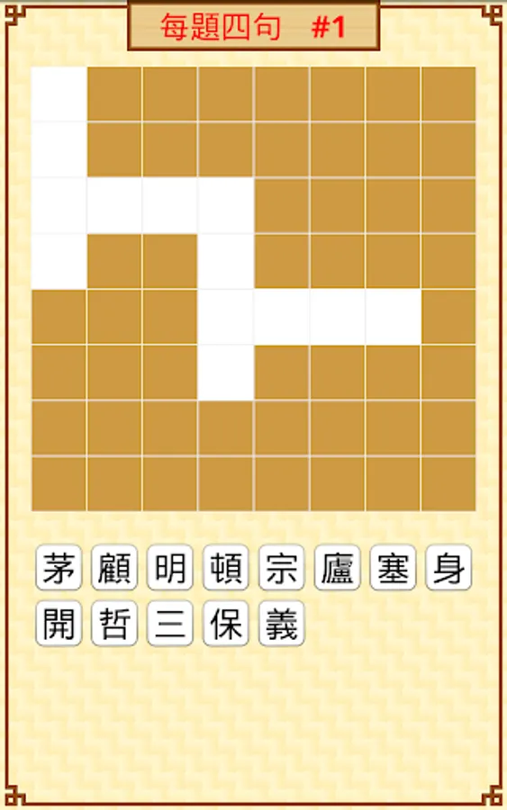 Each question will generate several blank grids in the puzzle area on the upper half of the screen